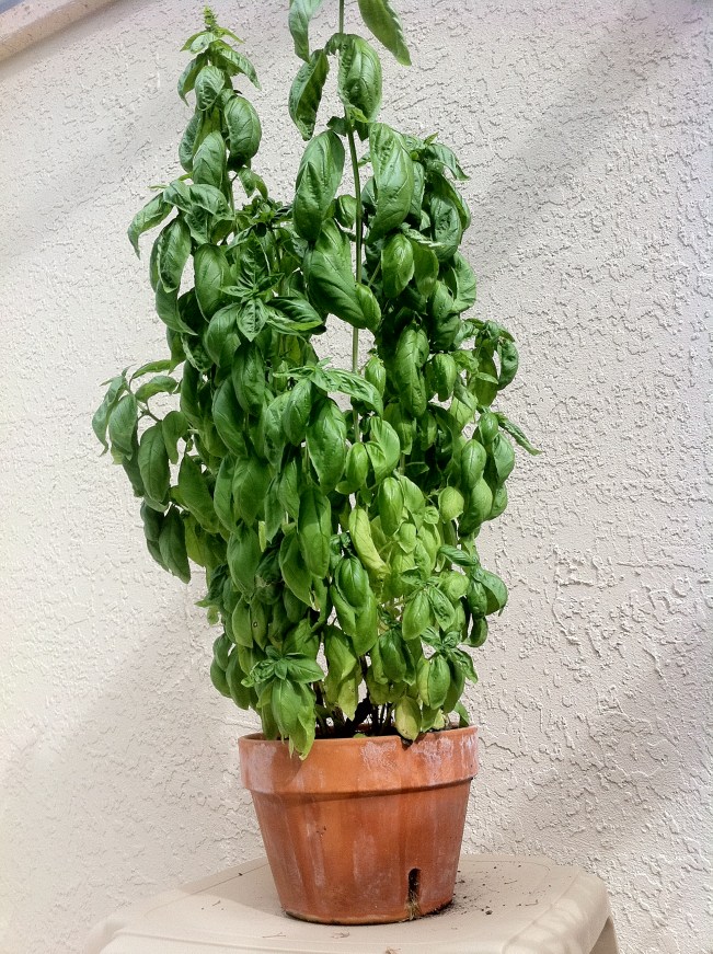 This little thing won’t stop growing. I confess, I’ve been extra diligent in monitoring its health because of this pesto recipe. It’s absolutely fantastic and could not be easier to make. I love going outside and picking the ingredients right off the stem.