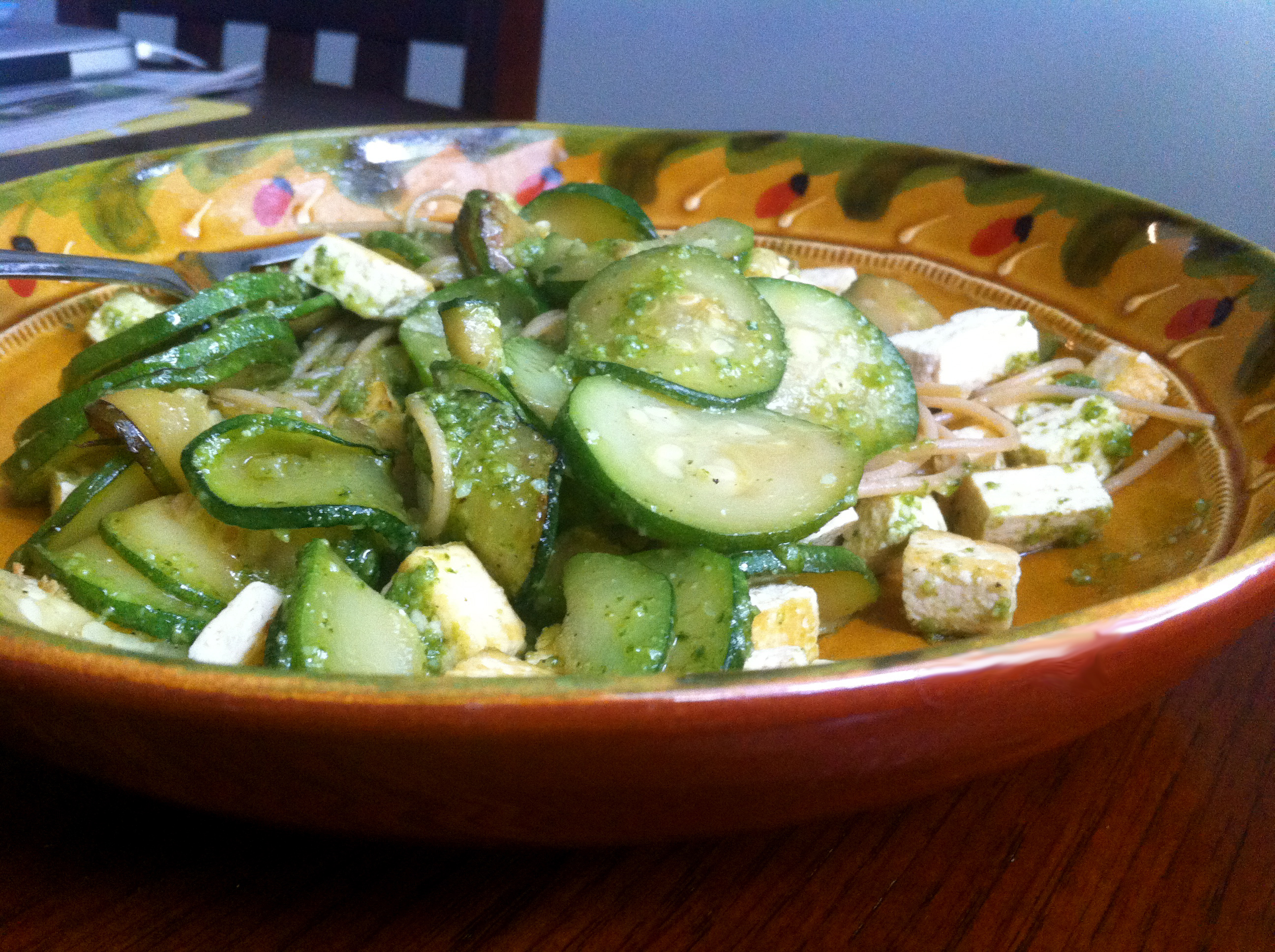 Pesto is so versatile. This would be delicious spread on a french baguette with sliced tomatoes and fresh mozzarella. I’ve been eating mine with whole wheat pasta, sauteed zucchini, and tofu. A little bit goes a long way.