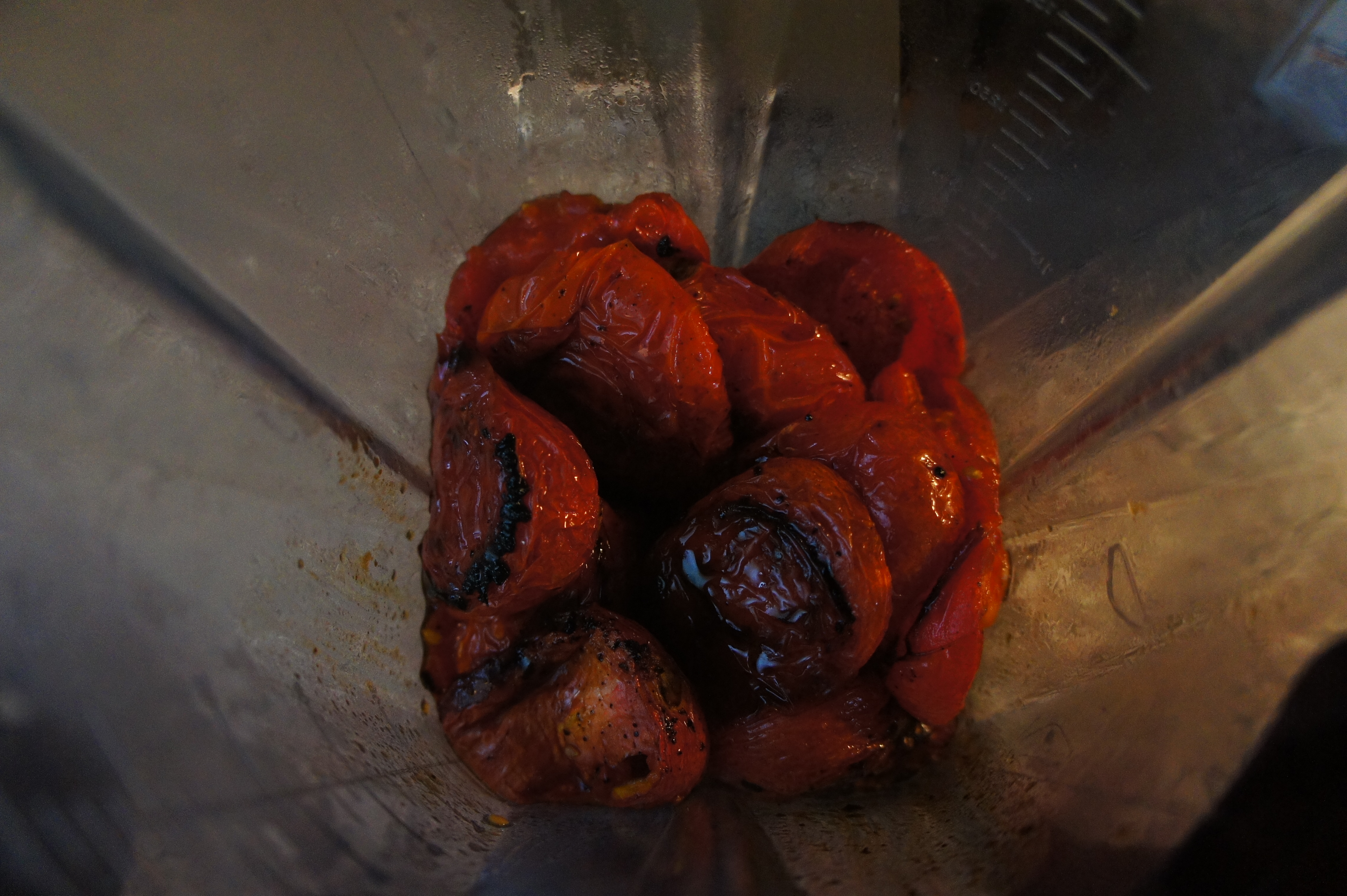 Unwrap garlic packet and peel cloves. Transfer garlic, roasted tomatoes, and juices to a blender or food processor. Pulse until you reach a chunky puree.