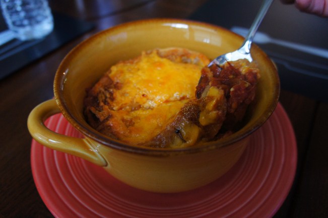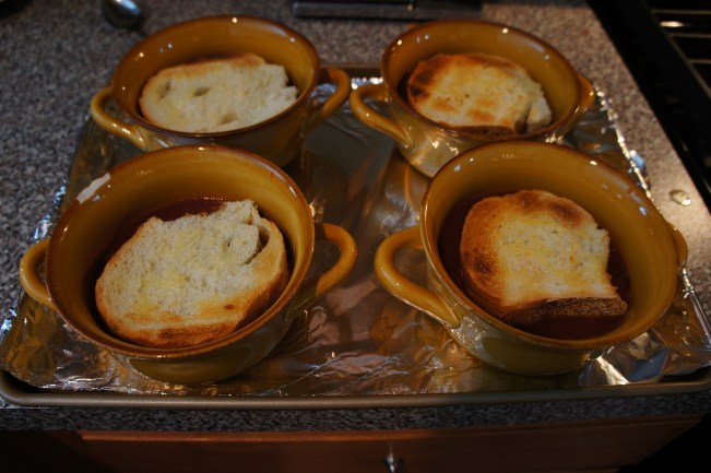 This was an absolute hit. The roasted tomatoes and roasted garlic create a deliciously flavorful soup. The bread is crusty on the edges and soaks up the soup perfectly. The broiled cheddar is just icing on the cake.