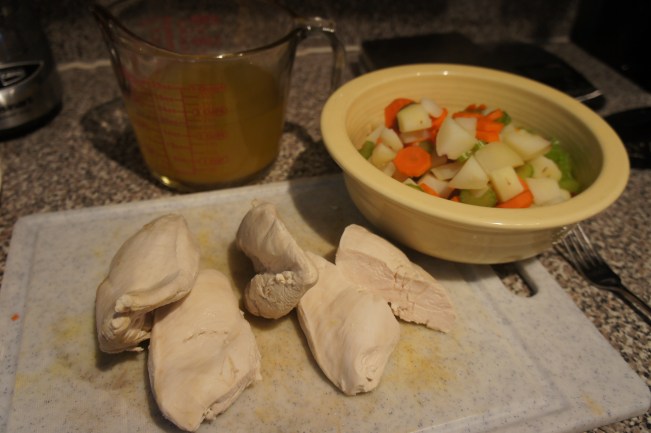 Chicken pot pie is a daunting recipe. The idea of making dough from scratch is enough to deter me (not to mention the fact that dough and heavy cream aren’t exactly health-friendly.) Unfortunately, I find restaurant chicken pot pies chock-full of things I’d rather not find in my pie– I’m looking at you, mushrooms, peas, pearl onions, thyme.
