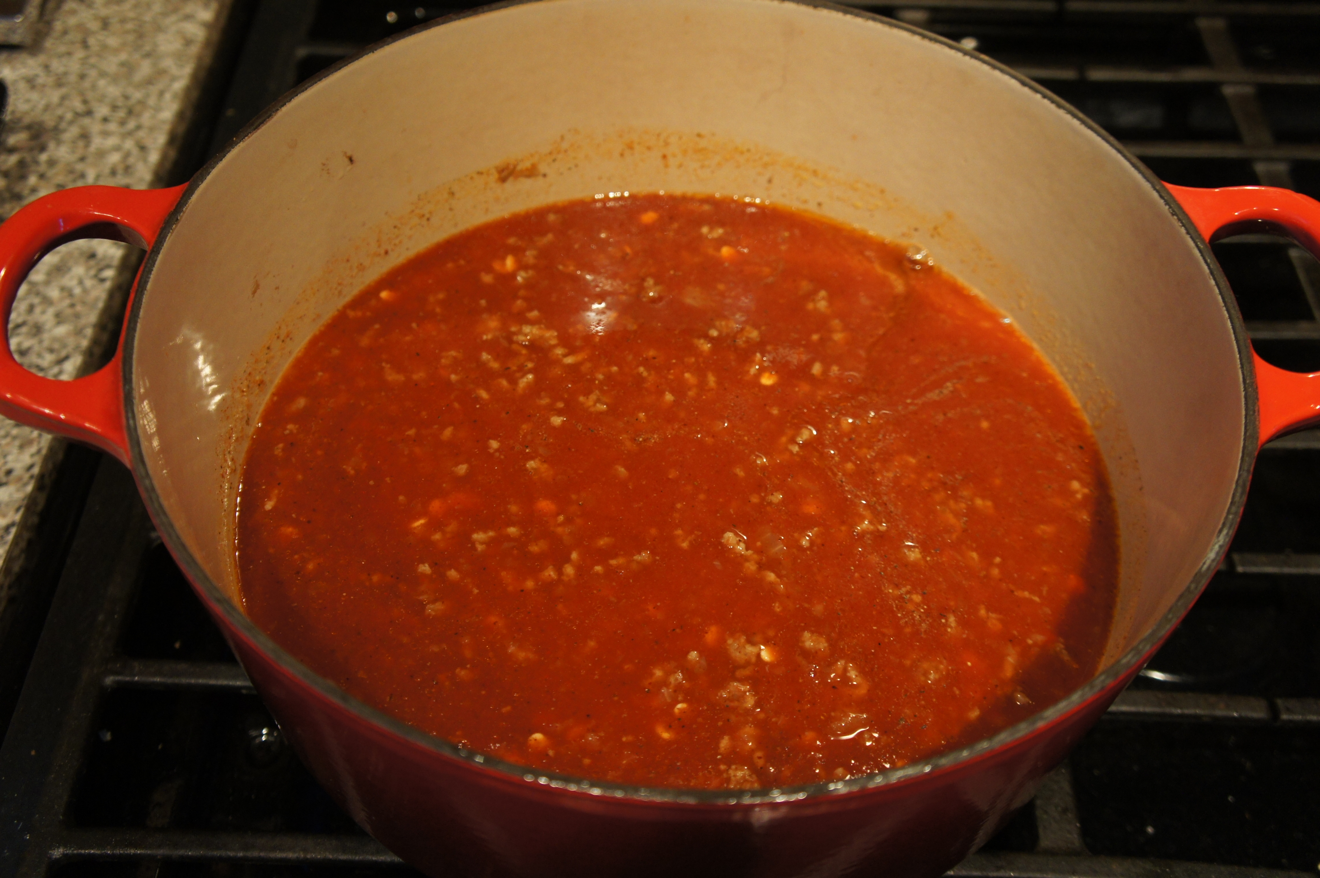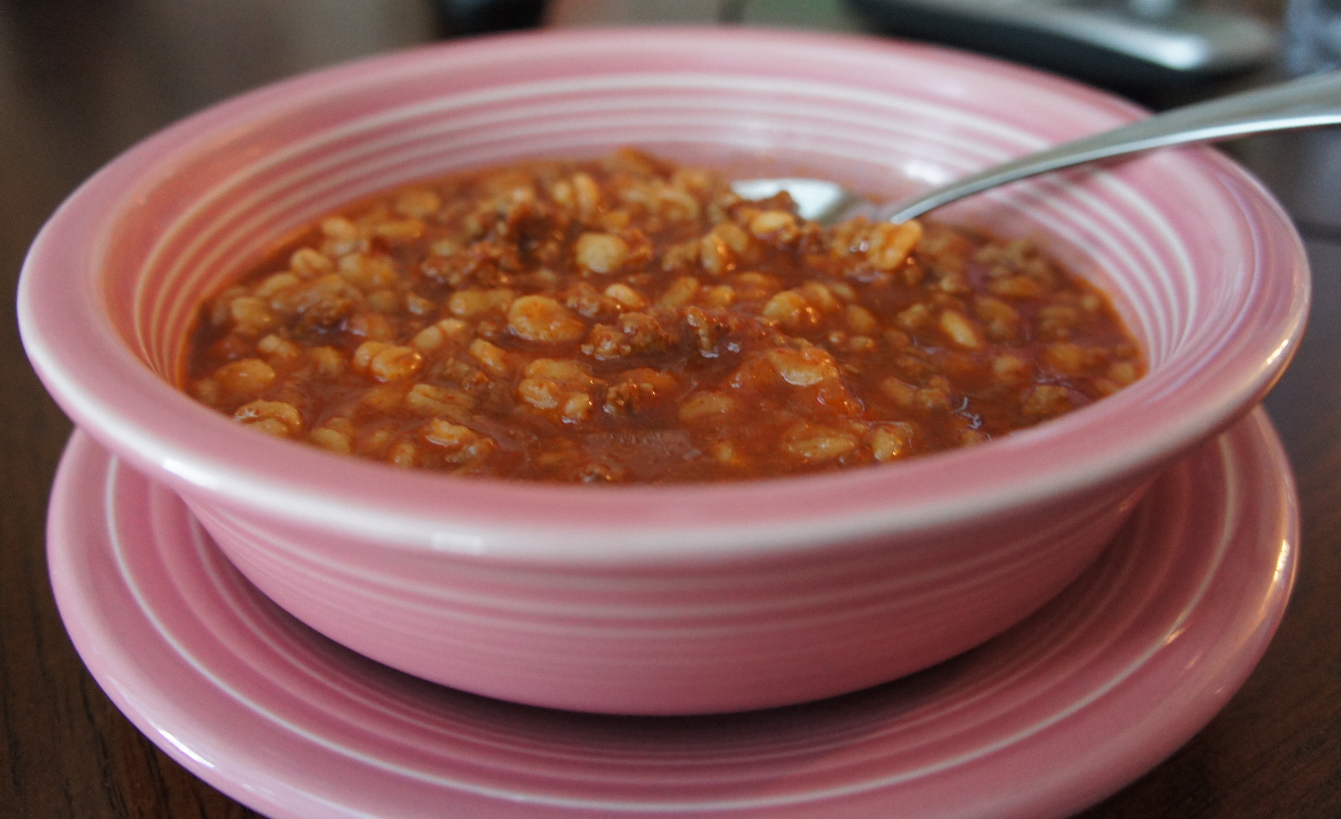 Barleyburger Stew is just that. My favorite part is the barley. It creates a nicely thick stew when it soaks up the tomato juice as it cooks. Fried hamburger, onion, and plenty of chili powder round out the perfect return meal for any trip.
