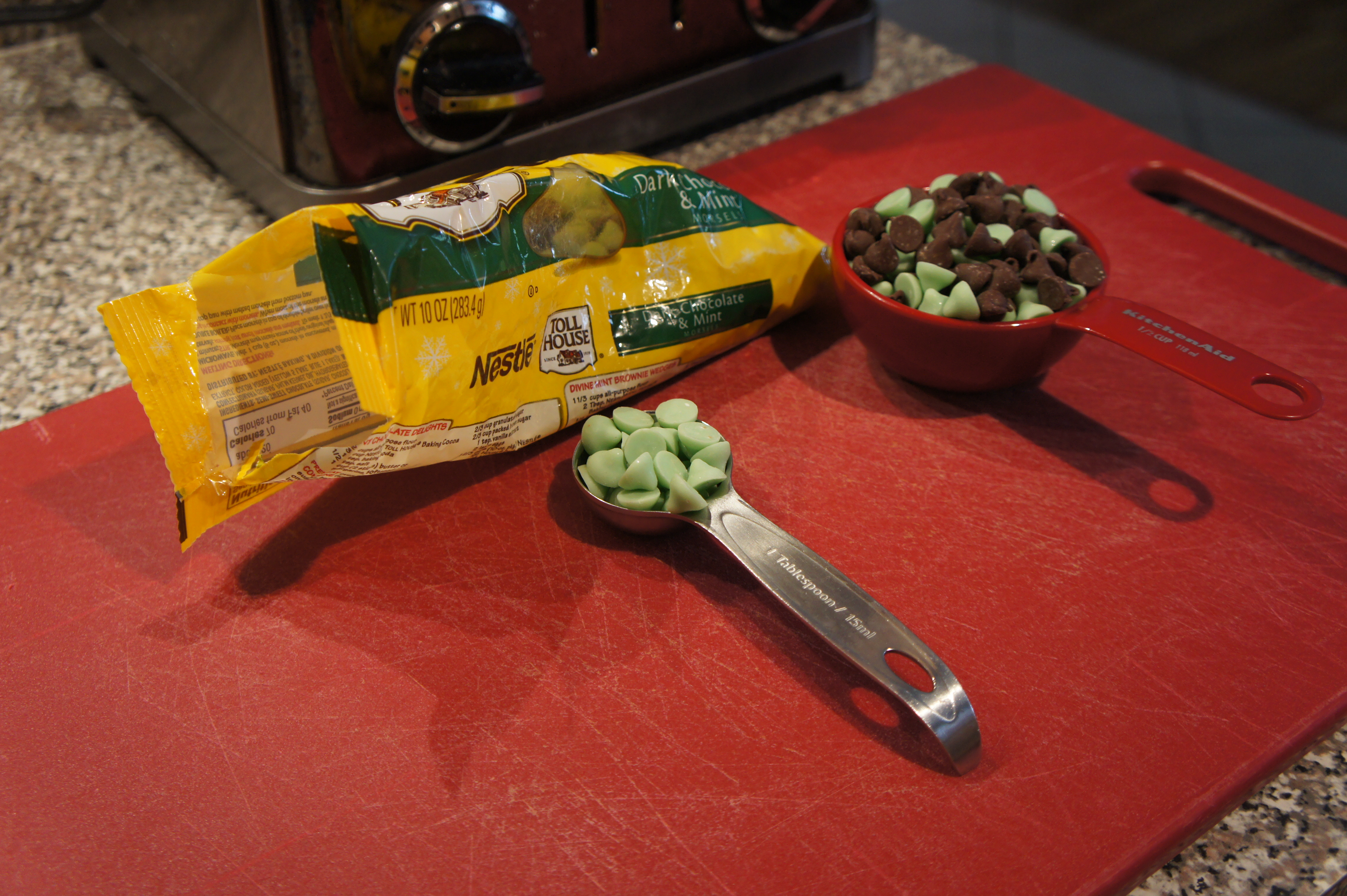 1 2/3 cups (10-oz. pkg.) Nestle Toll House Dark Chocolate & Mint Morsels