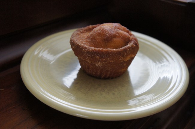 I’m a sucker for Williams Sonoma ready-made decadent breakfast treats. These doughnut muffins are dusted in a light cinnamon sugar coat and are delivered frozen to your door in two half dozen packages– forced portion control. They are delicious.
