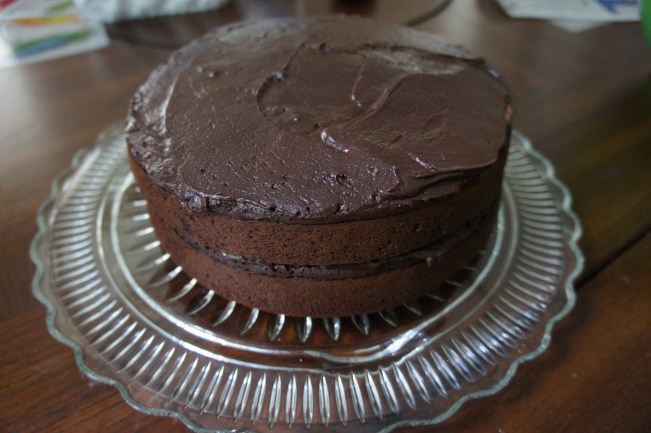 This is the BEST CHOCOLATE CAKE EVER and I use all caps sparingly. When I read this recipe from 101 Cookbooks, one of my favorite food blogs, I knew immediately I had to make it. The only problem was I didn’t have a bundt pan but in all honesty, I welcomed a little tweaking. There’s nothing more decadent than a layer cake. The frosting ratio is just so much better. What words would I use to describe this cake?