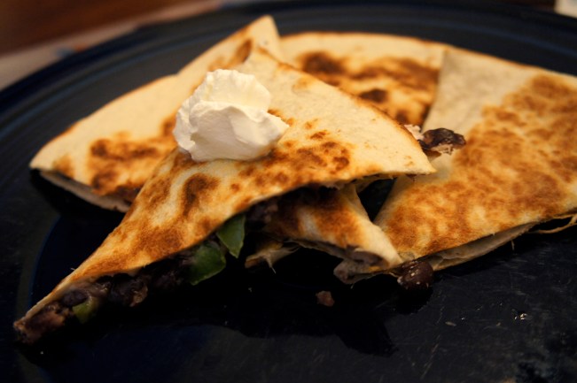 Two things I naively did not realize: Number one — quesadillas are quite possibly the easiest thing you could ever make. Why oh why have I spent many a hungry night waiting for water to boil for pasta when I could have whipped up a quesadilla in half the time? Number two — quesadillas aren’t fried. They just cook in a nonstick skillet. No oil. I don’t know why I thought there was oil.